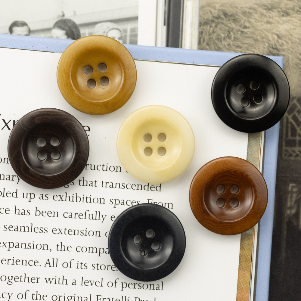 碗型の米黄カードの深いコーヒーの黒色は木目の復古の綿麻のシャツのシャツのカーディガンの樹脂のボタンのボタンをまねます。