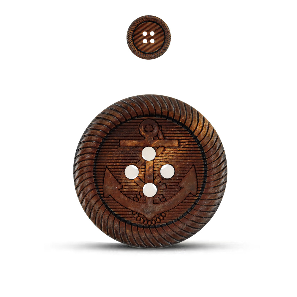 志とレトロな丸いストライプの火の天然牛の角のボタンのアンカーの船のアンカーのコートのスーツのコートのボタン