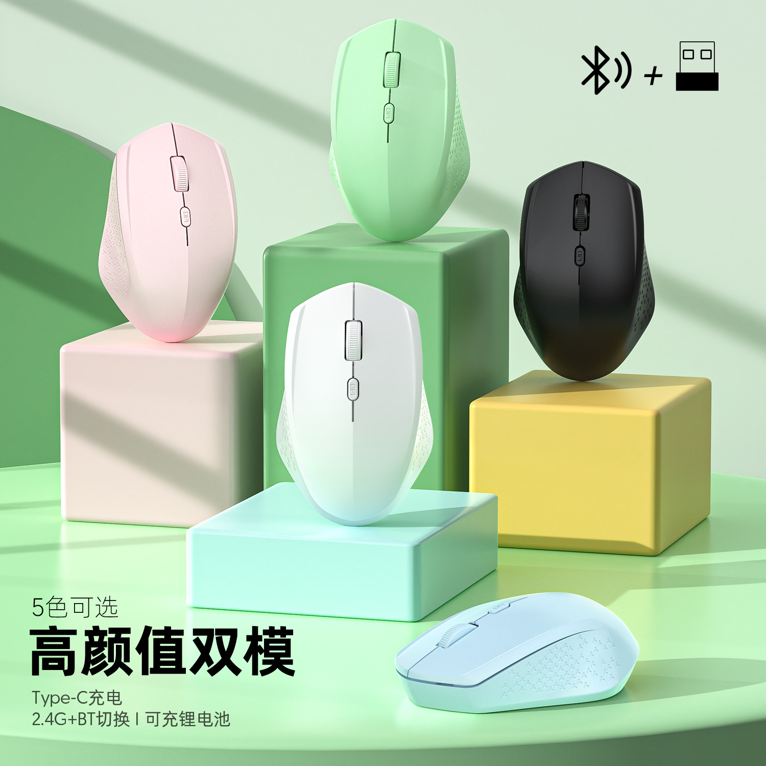 iPad、携帯電話、タブレット、ノートブックに適したクロスボーダーワイヤレススプライシングコントラストカラーデュアルモードポータブルマウスワイヤレスマウス