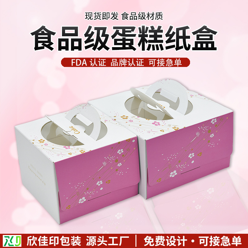 現物ピンク誕生日ケーキ箱半透明焙煎紙箱洋菓子箱甘いタルト箱