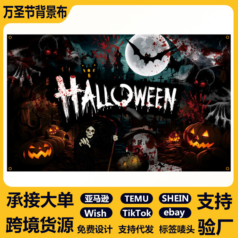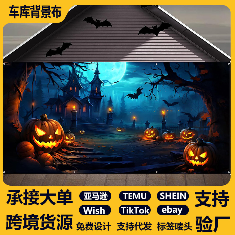 ハロウィン新しいクロスボーダー写真撮影ガレージ背景布バナー恐ろしいモンスター雰囲気シーンレイアウト撮影装飾