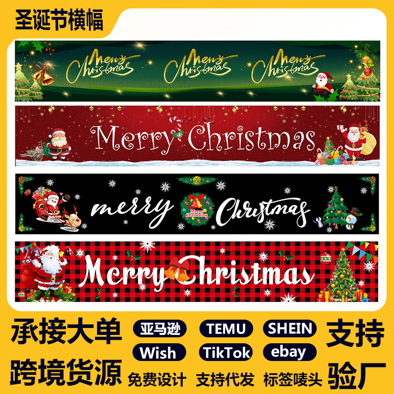 Amazonクロスボーダー新しいクリスマスカプレットドアカーテンお祭り雰囲気アレンジメントクリスマスフラッグ背景布バナー