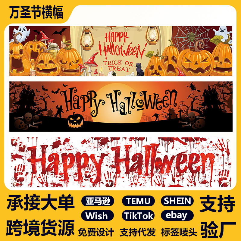 Amazon クロスボーダー 2025 ハロウィン バナー ポリエステル ゴースト フェスティバル パーティー デコレーション ハンギング フラグ フラグ フェスティバル ガーデン デコレーション