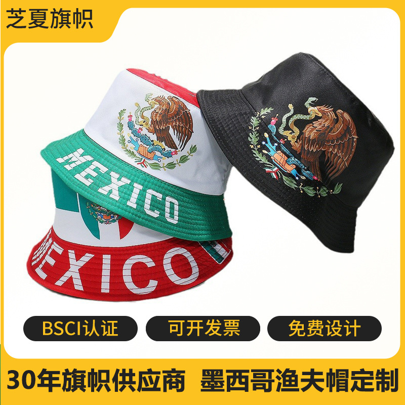 新型メキシコ国旗模様漁師帽外国貿易ファッション帽女性両面春夏屋外日焼け止め帽子