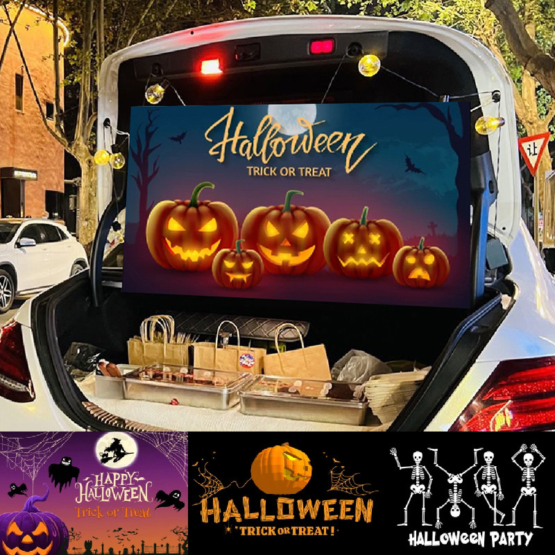 2025新型ハロウィーン背景布自動車トランク幽霊カボチャ車旗パーティー用品カスタム