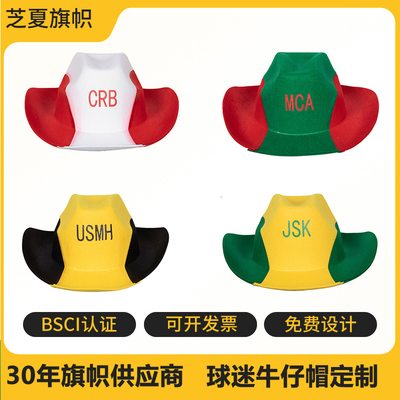 国境を越えて色を合わせた各国国旗フェルトカウボーイ帽西部カウボーイ帽子日焼け止めファンが帽子に立候補した