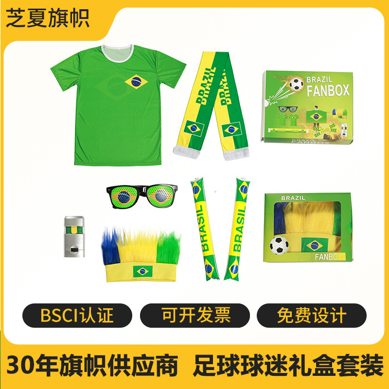 国境を越えたサッカーバスケットボールファンのギフトボックスセットtシャツマフラーかつら帽子拍手応援道具セット