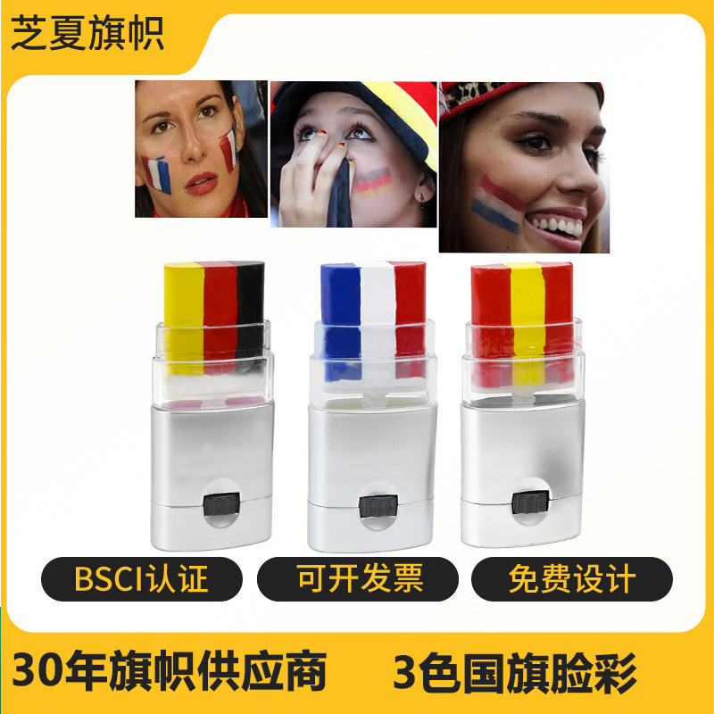 国境を越えた三色ワールドカップ国旗人体顔彩色ペンファンイベント顔彩祝日パーティー落書き油彩