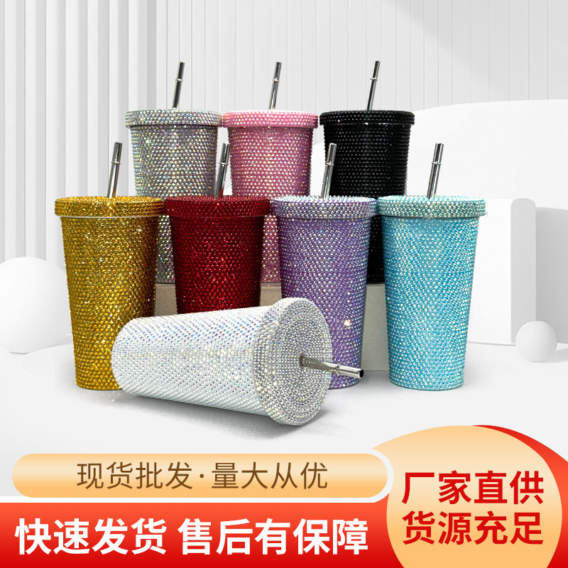 ネット赤にドリルストロー保温カップ304ステンレス二重ステンレス保温カップ高颜値水ドリルギフトカップ