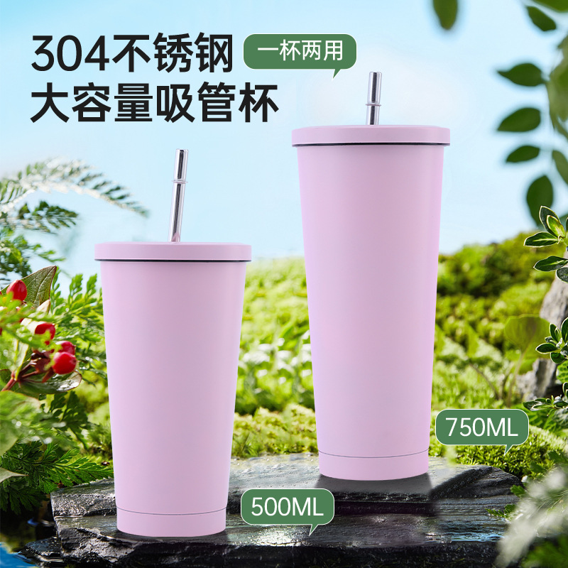 クロスボーダー専用304ステンレスストローカップ二重氷覇保温カップ携帯屋外車載真空コーヒーカップ