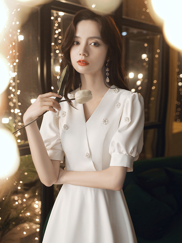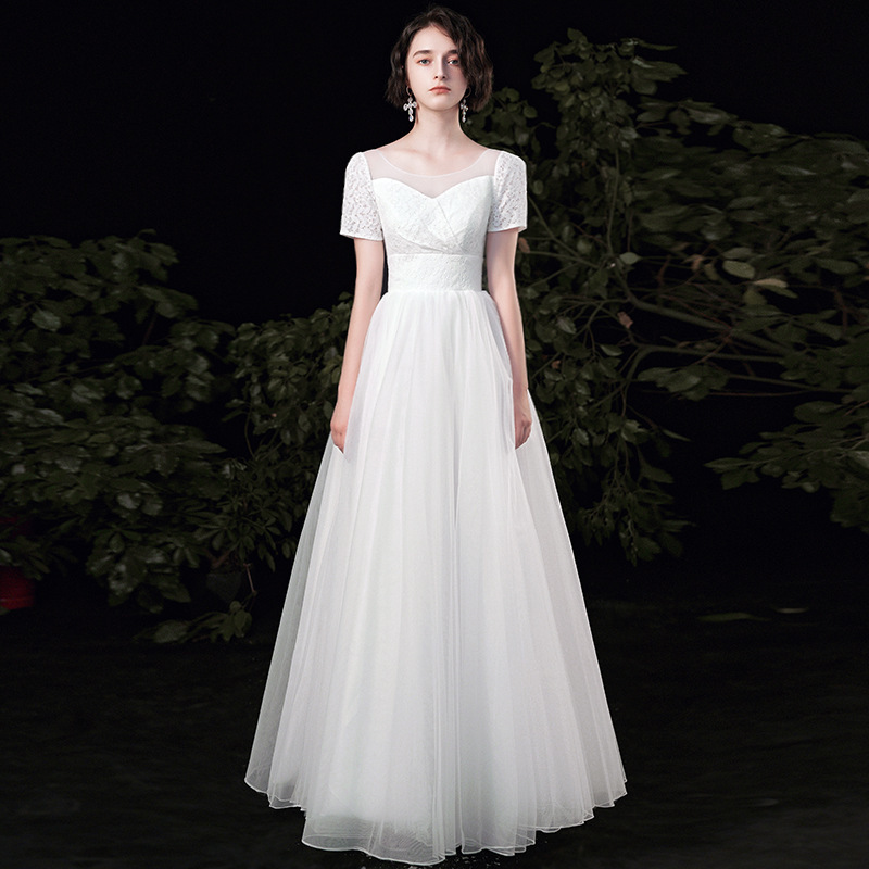 白いドレスの女性2021の新しい夏の気質司会者のヘボンは普段は旅行でウェディングドレスを撮ることができる