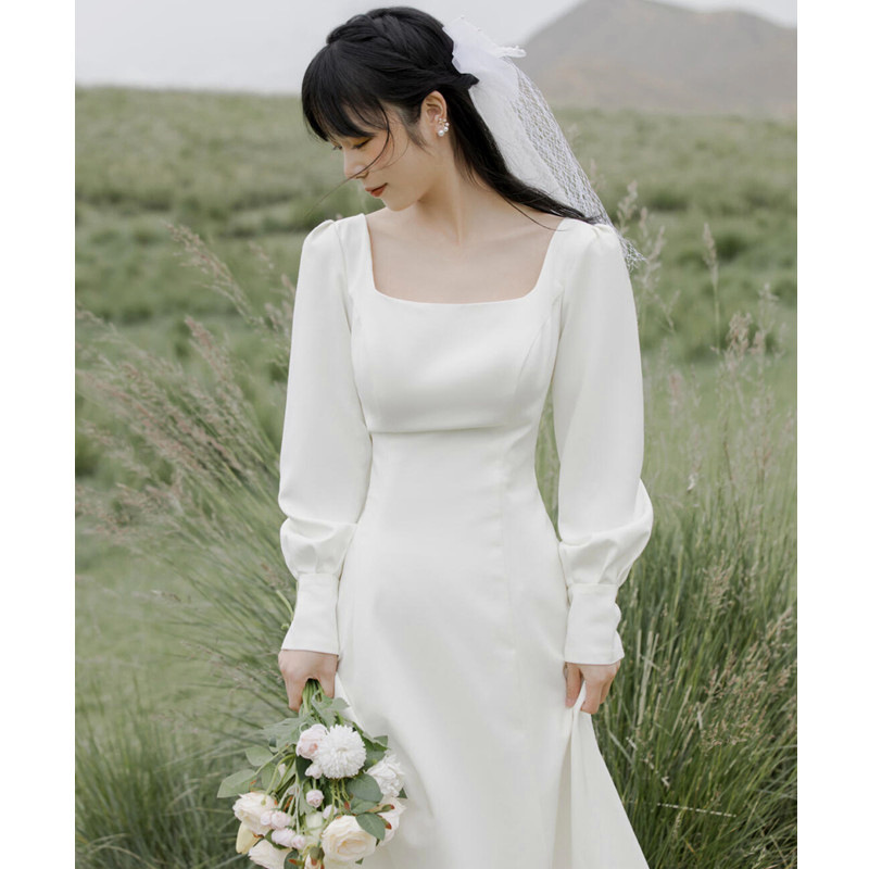 ライトウェディングドレス 2023 新スタイルフレンチレトロシンプルデイリートラベルフォトグラフィアスーパーフェアリースタイル痩身トラベルフォトグラフィアロングドレスイブニングドレス