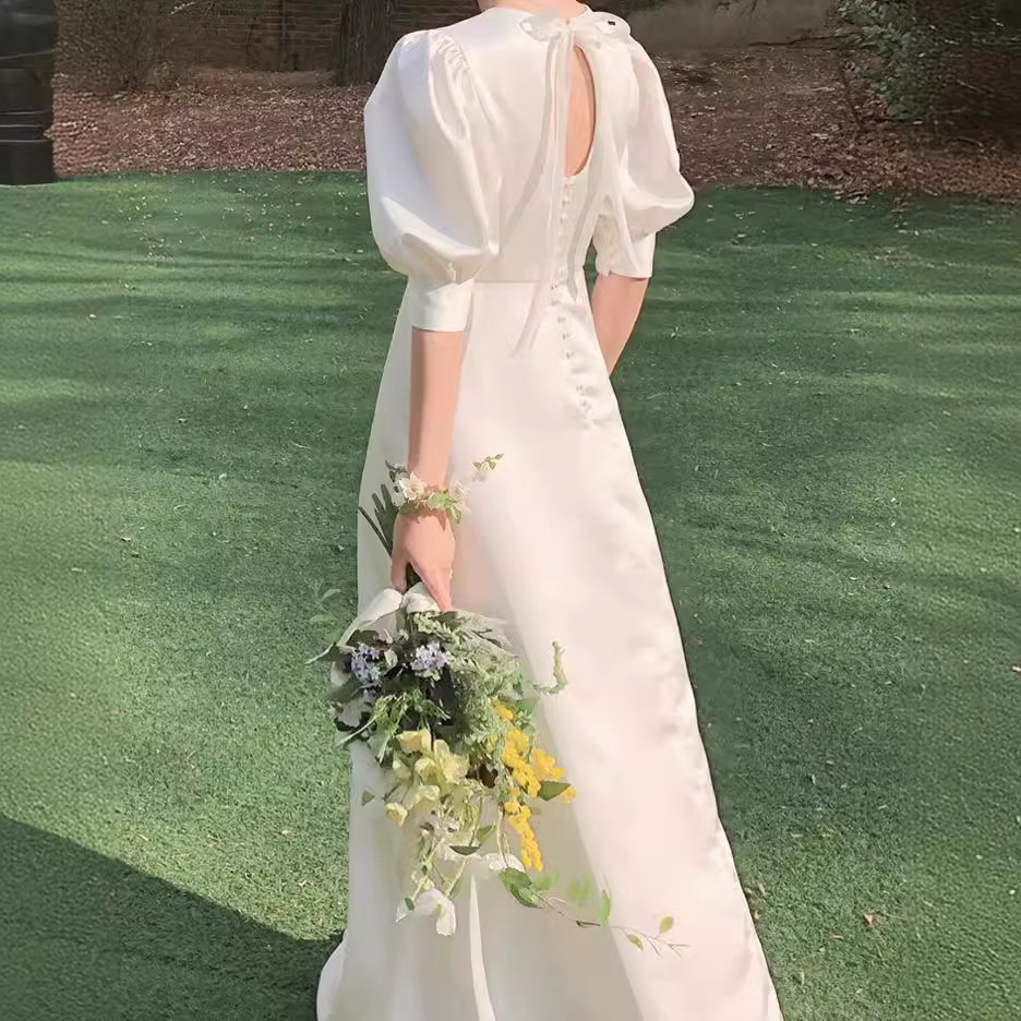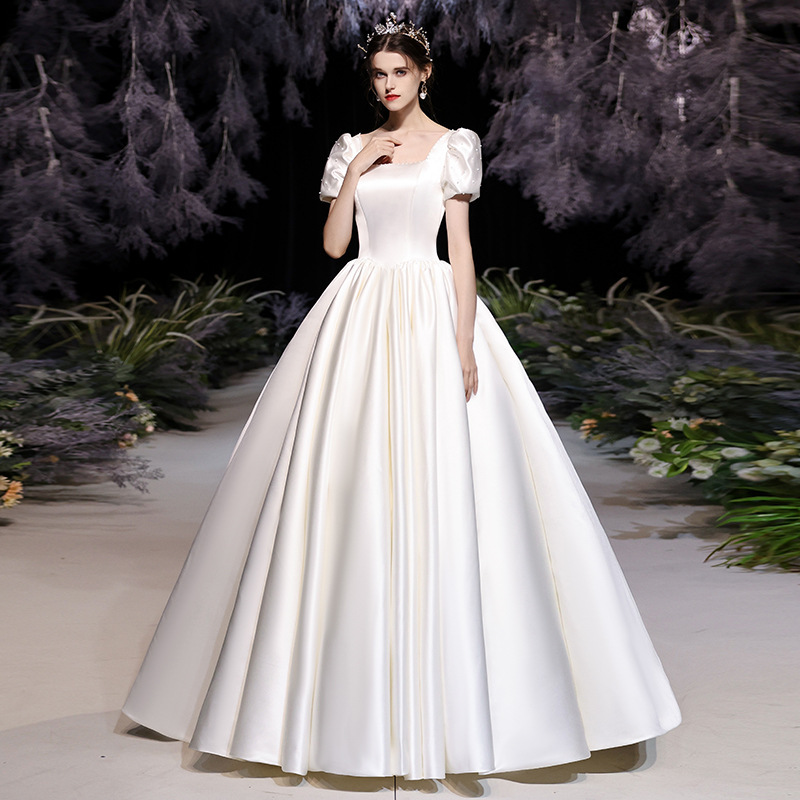 軽いウェディングドレス2021夏の新しい花嫁気質レトロな白い主糸サテンのフランスのシンプルなヘボンの軽いウェディングドレス