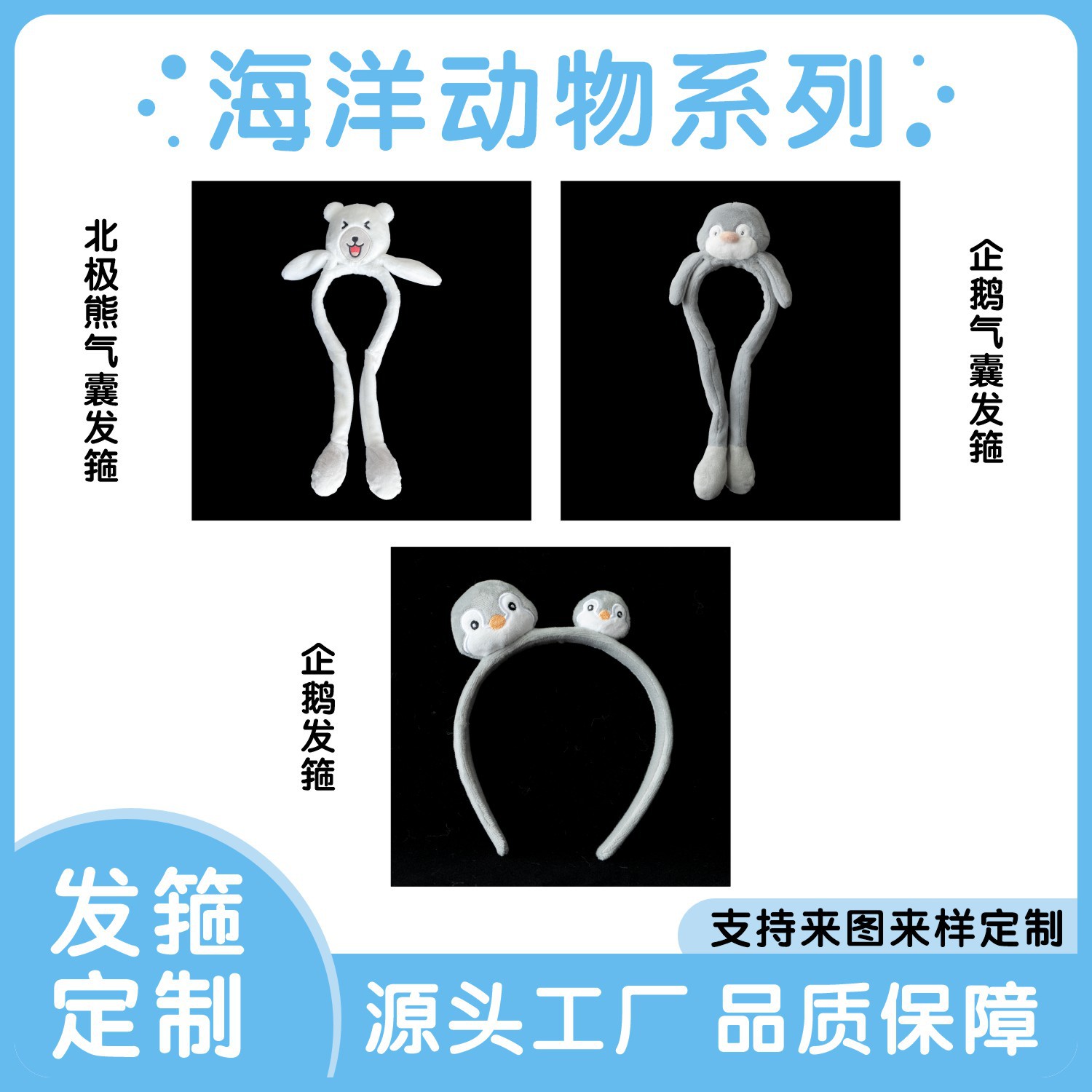Qingde オリジナルヘアバンドペンギンシロクマエアバッグヘアバンド洗顔ぬいぐるみかわいいペンギンヘアバンド卸売カスタマイズ