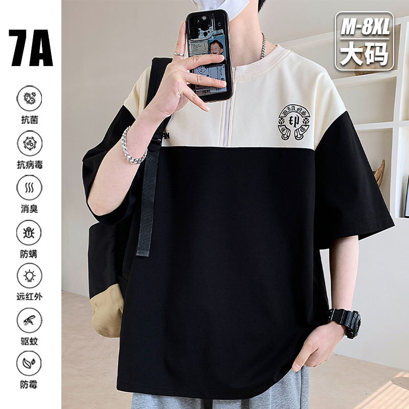 丸襟衝突色プリント半袖tシャツメンズ2025夏新作冷感アイス半袖男性スポーツtシャツ