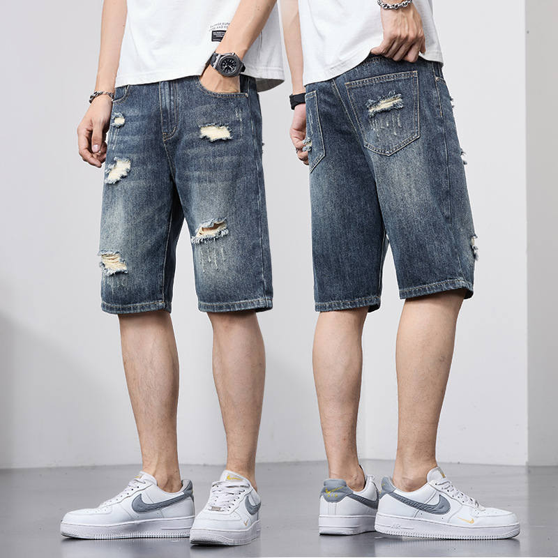 2025 新しい夏のアイスシルク薄いリップドデニムショートパンツメンズストレートルーズ乞食パンツトレンディなメンズパンツ