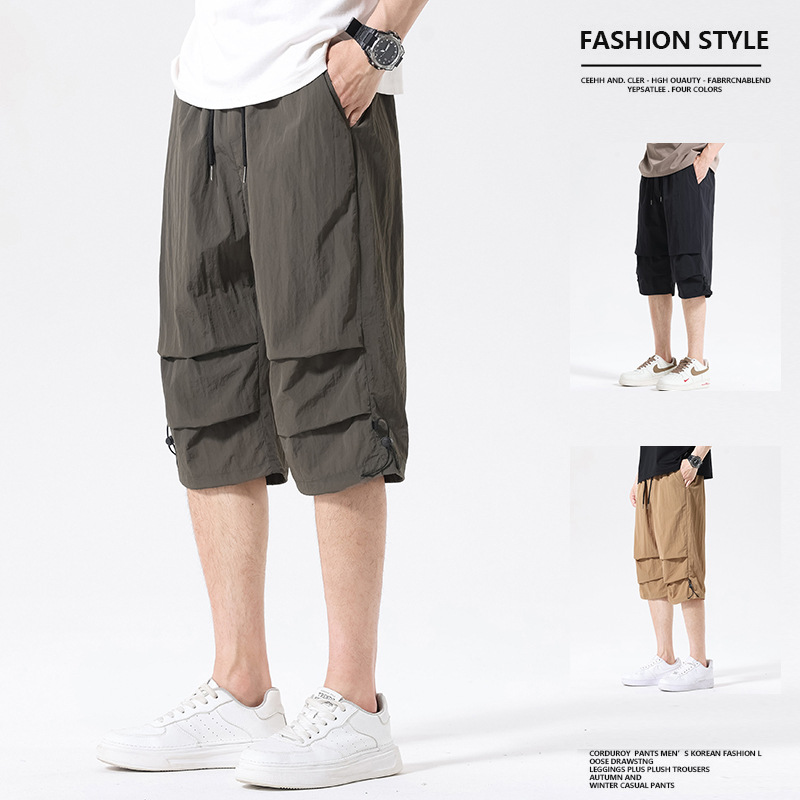 メンズショートパンツ夏薄氷シルク2025新作ルーズストレートワークウェアスポーツレジャー万能5点パンツ