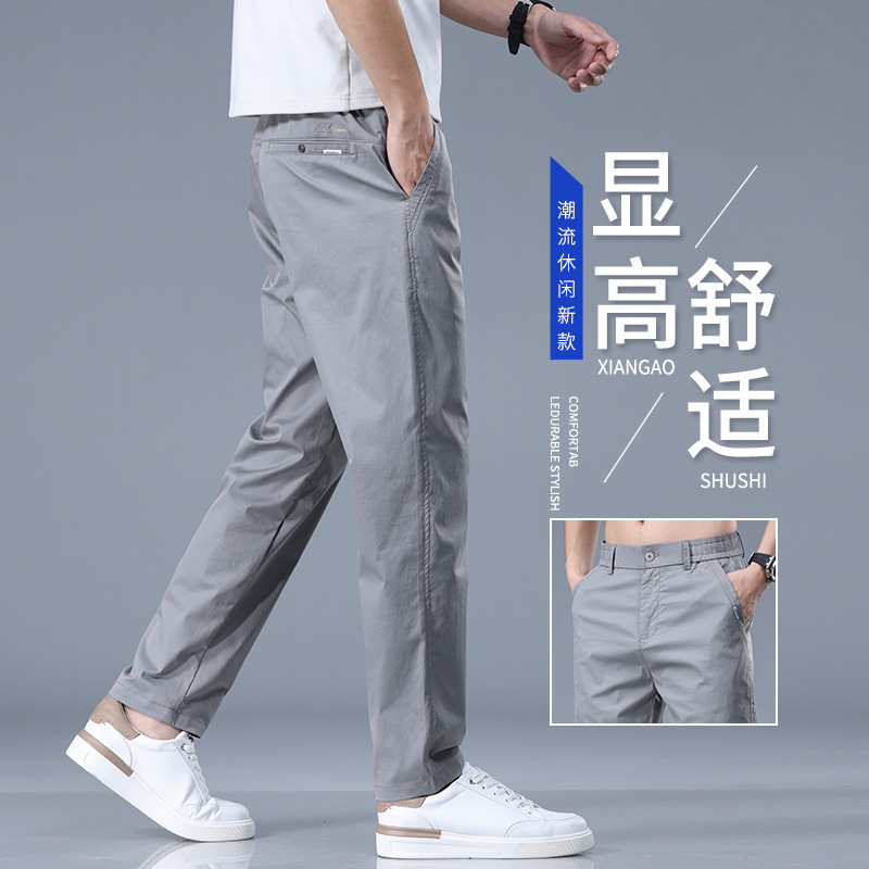 日常的に男性のズボンの耐摩耗性弾力性のあるスリムなストレートパンツ春夏の通気性のあるスポーツカジュアルパンツ男