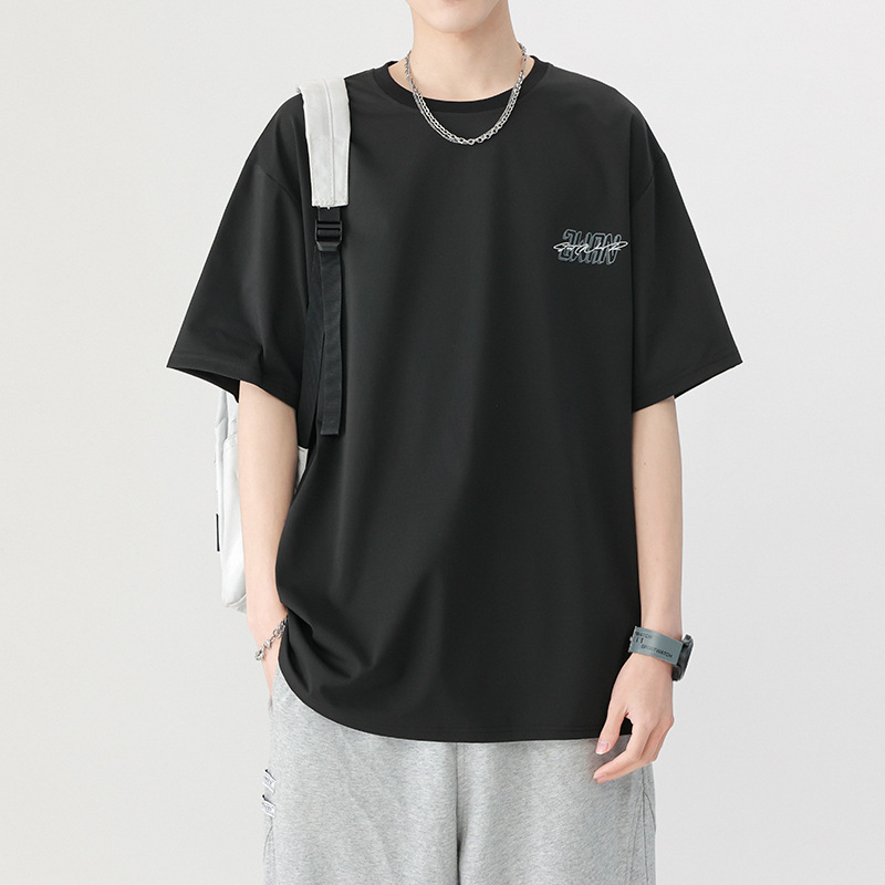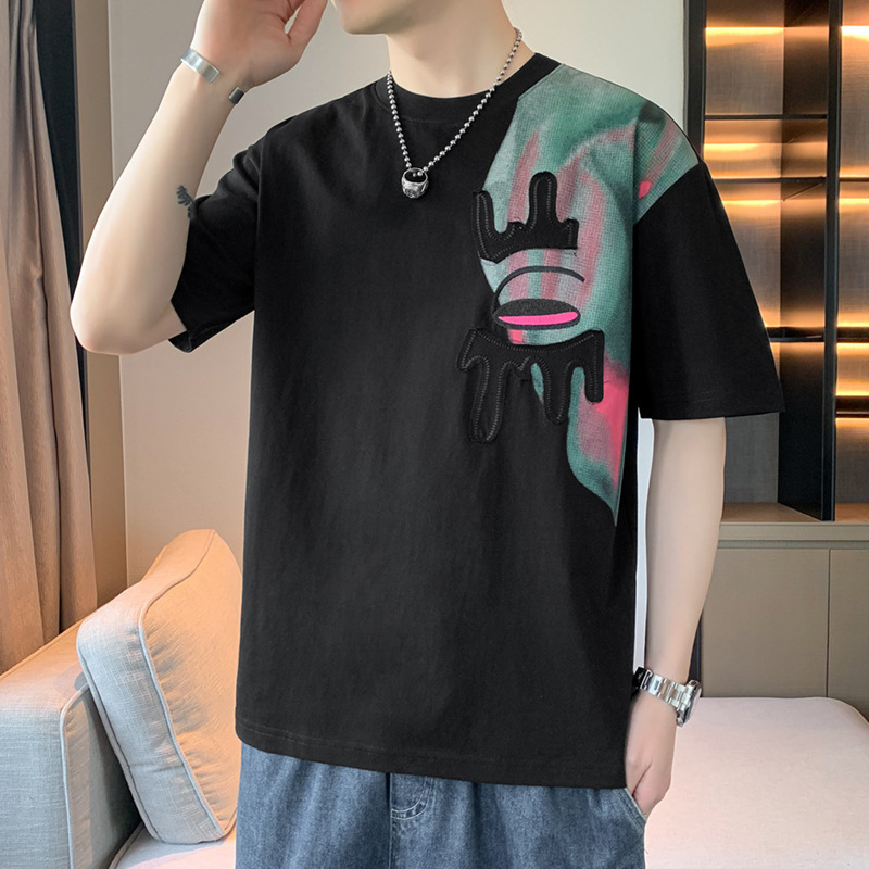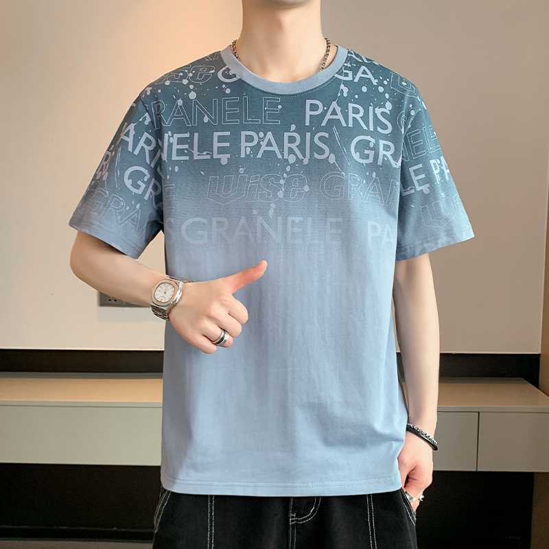 2025夏の新型メンズ半袖tシャツ韓国版ファッション半袖カジュアル香港風プリント丸襟半袖男
