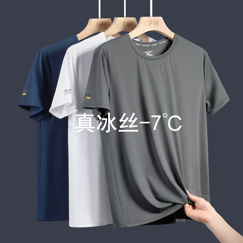 爽やかな氷感弾力性速乾tシャツ男性夏の薄いスポーツ半袖丸首通気性tシャツランニングトレーニング服
