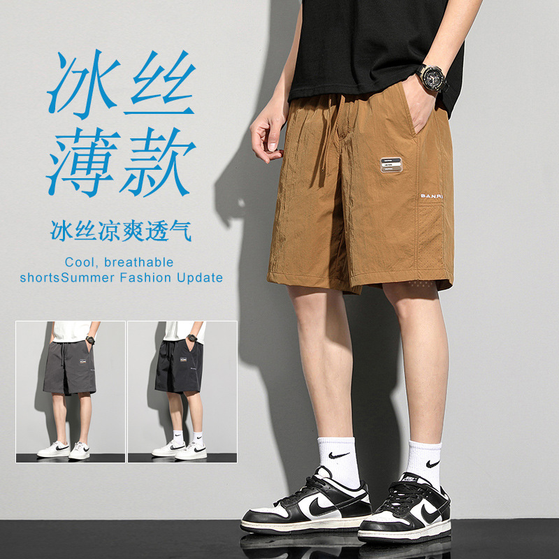氷糸半ズボン男性夏の薄いタイプの速乾レジャーバスケットボールの5分のズボンの男の夏の潮牌運動の大きいパンツ