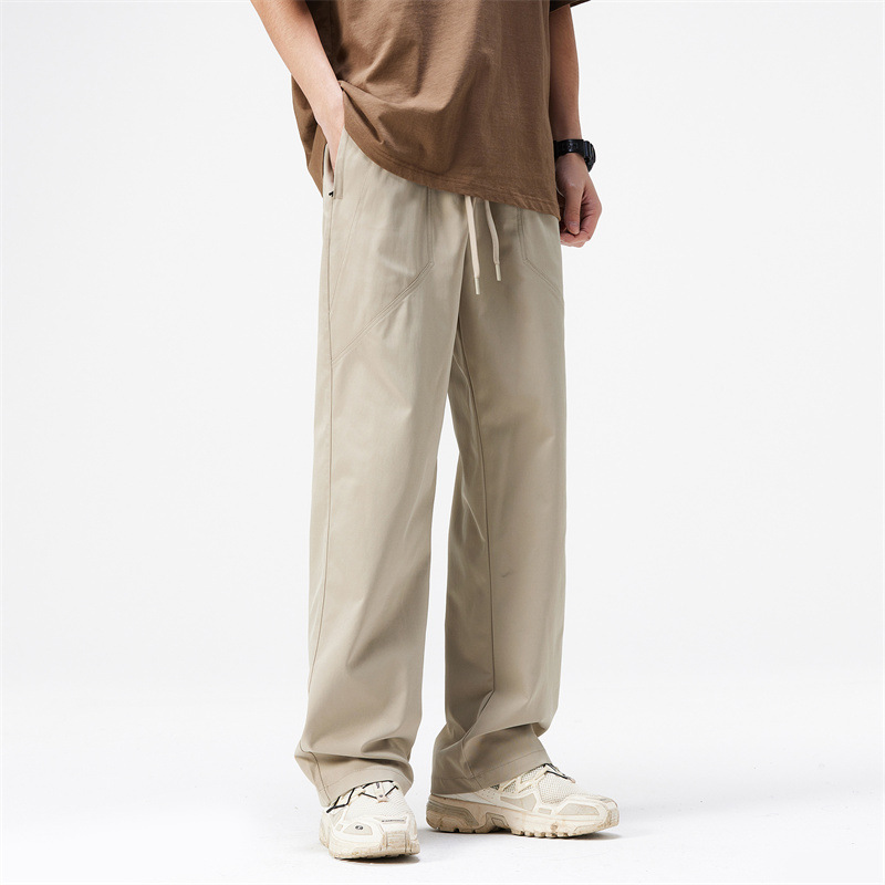 氷の糸のカジュアルなズボンの男性の2025新型の夏の薄い金の垂れ下がった感じの小さい背のゆったりしているまっすぐな筒の9分のズボンのズボンのズボン