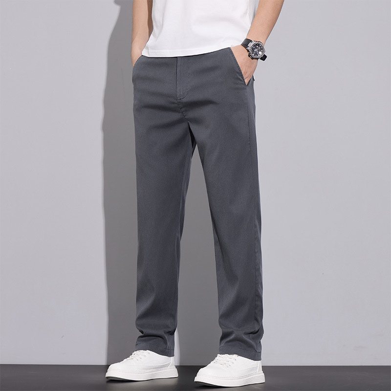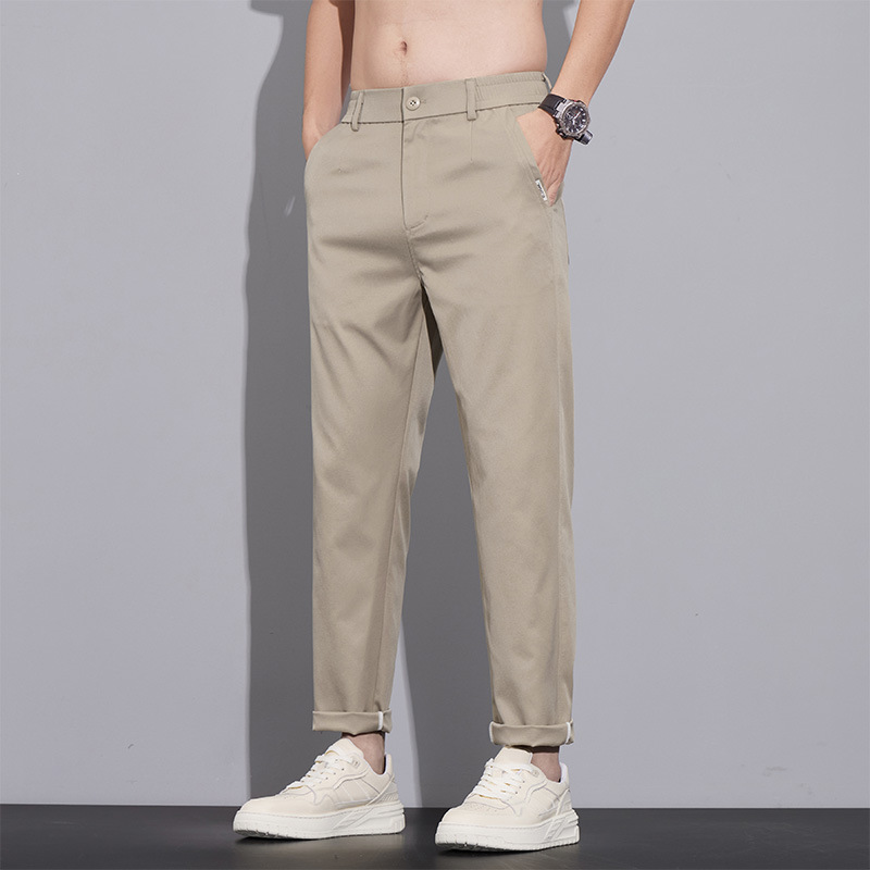 古典的な色の男性の速乾のズボンの春夏の薄い金の通気性の男性の金の軽いビジネスの弾力の小さいストレートのズボンの男性のカジュアルなズボン