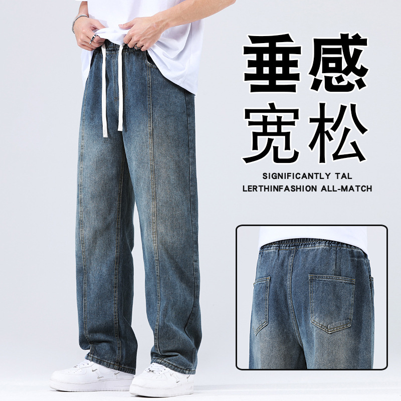 ストレートジーンズメンズ2025新作トレンドブランドワイドレッグアメリカンハイストリート春秋レトロユースカジュアルパンツ