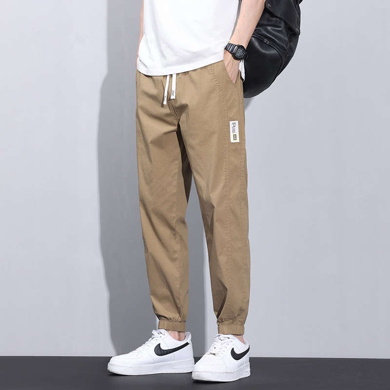 灰色のカジュアルズボンの男性2025の新型の足の長いズボンの夏の薄い金の氷の糸の純色の9分の工装のズボンの男性