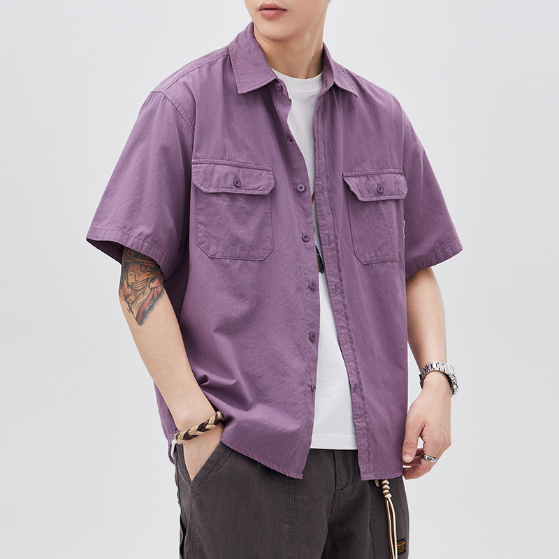 レトロな夏の新型男性工装立襟綿麻コート男性百合ゆるいカジュアルブランド半袖tシャツ