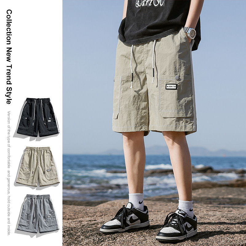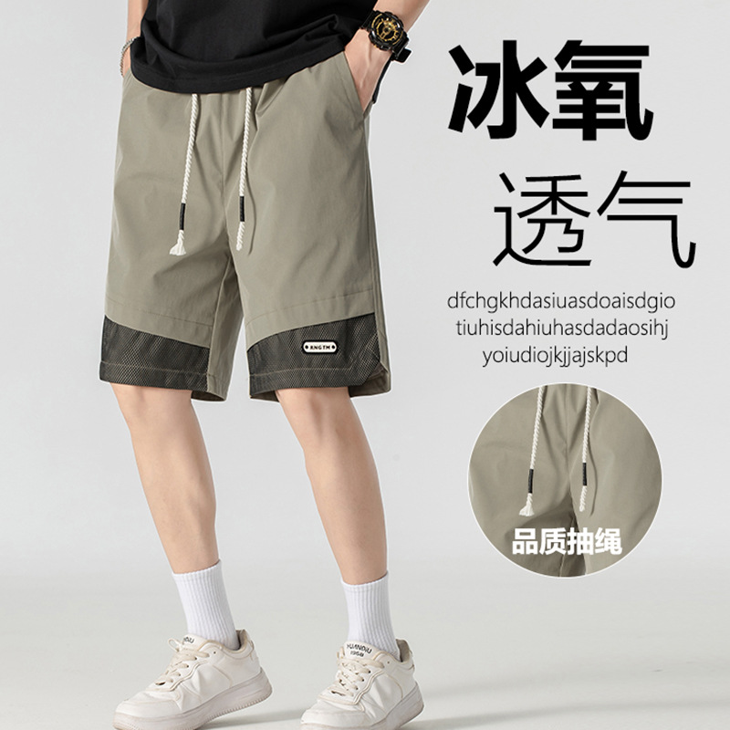 夏の工装半ズボンの男性の薄いタイプの通気性の防水のゆったりした潮流のまっすぐな筒の5分のズボンのカジュアルな氷の糸の半ズボンの源
