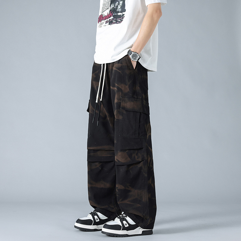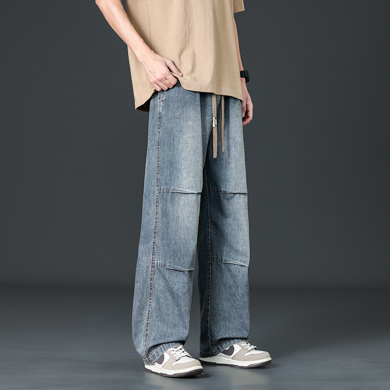 2025夏の新型ins香港風の大きいサイズのデブのジーパンの男性のゆったりしているカジュアルな水洗いのストレートズボンの男性
