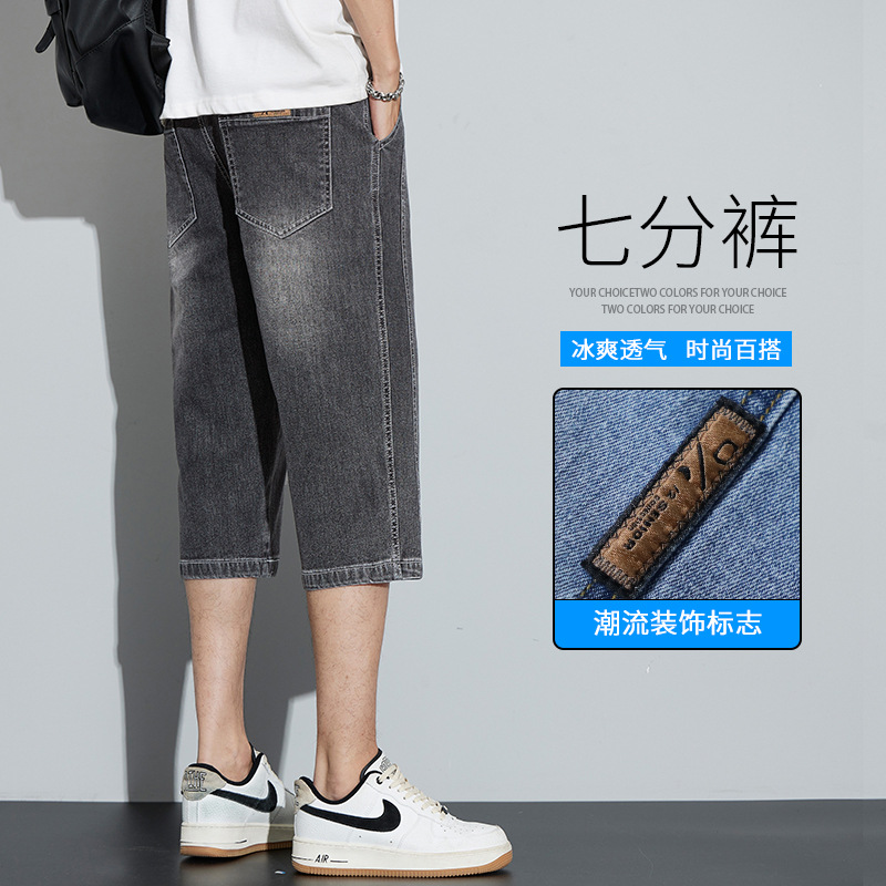 七分ジーパン男2025夏の薄いファッションの男性のストレートの百合のゆったりした男性のズボンのカジュアルなショートパンツ