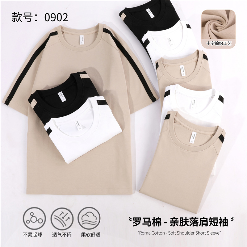 国境を越えたアメリカの重いポンドの純綿は色を合わせて肩の3条の棒のtシャツの男女のゆったりしている感の丸首の半袖のtシャツにぶつかります。