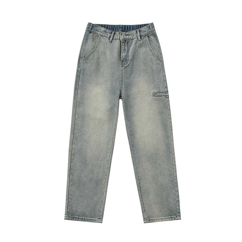 2024年香港風ゆるいジーンズ男女春韓版トレンド百合復古ins潮牌ストレートパンツ