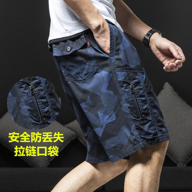 夏の新型男性純綿工装運動七分ズボン中年大サイズアウトドアレジャー迷彩ビーチ中ズボン