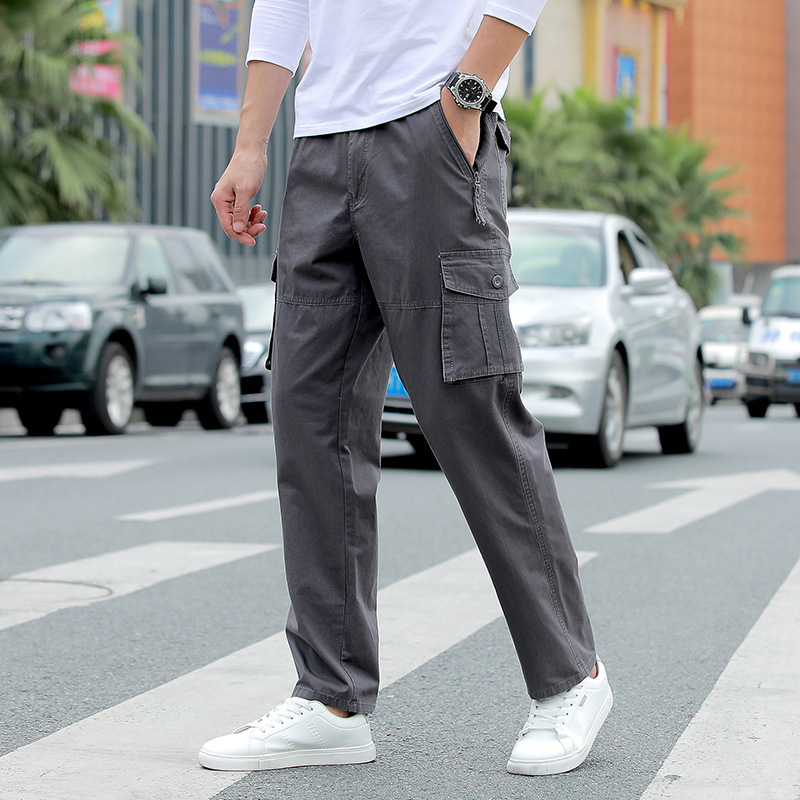 2024男性春のゆるいストレートポケット多ポケットパンツ中年の綿の大きいサイズのカジュアルパンツ春の男性服