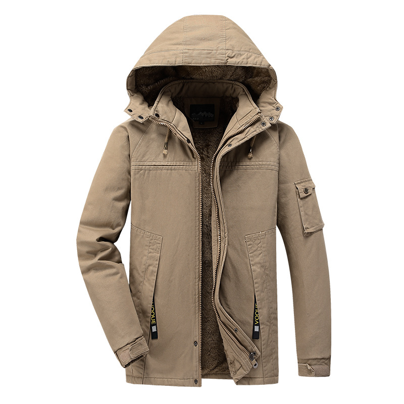2023秋冬メンズ中年男性お父さんカジュアルかっこいいコートビジネスフード付きジャケットベルベット秋冬上着
