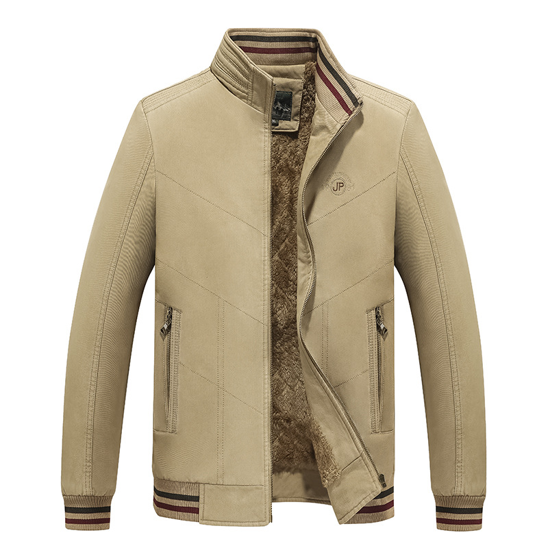 2024純綿春ジャケット男性中年春服カジュアルお父さん服とベルベットの厚いゆったりした工装コート