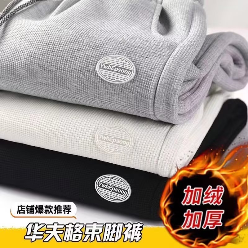 ワッフルカジュアル男性秋冬ゆるいベルベット足スポーツパンツ学生衛ズボントレンドストレートズボンファッション
