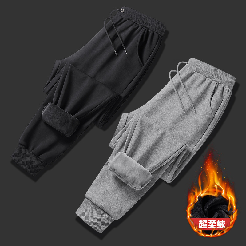 カスタマイズされたスポーツパンツ男性秋冬にベルベットをつけて、ストレート男性のカジュアルパンツに太って、大きいサイズの保温パンツを追加します