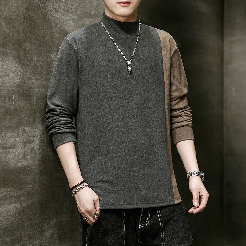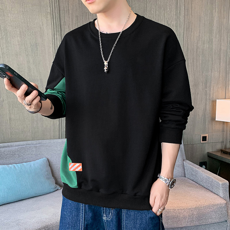 カスタマイズ2024年メンズ長袖tシャツ春の丸襟韓国版長袖シャツ青年ファッションインナーシャツ