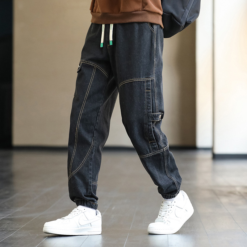 カスタマイズ2024春ジーパン男は腰を緩めて太って大きいサイズの韓国版のファッションの太っている子供のゆったりしている9分のズボンをプラスします。