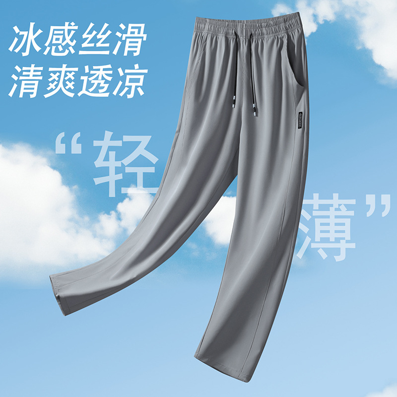 氷の糸の弾力性の薄いズボンの男性の夏のカジュアルなズボンのゆったりしている大きいサイズのフィットネスのスポーツのズボンのまっすぐな筒の速乾のズボン