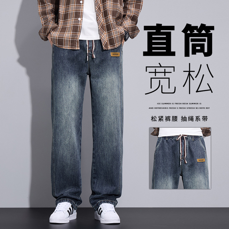 ジーンズメンズ 2025 トレンディなブランドルーズストレート秋の新作ワイドレッグトレンディなアメリカンハイストリートカジュアルパンツ