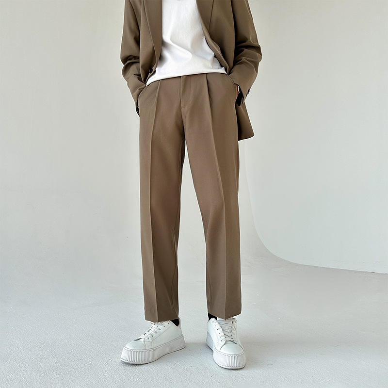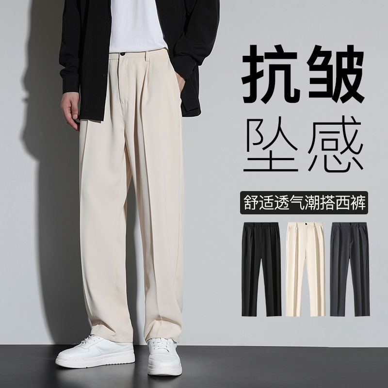 春秋2025の新型の小さいズボンの男性の9分の韓国版の潮流の垂れ下がっている感じの修身はやせているカジュアルなストレートのスーツのズボンを現します。