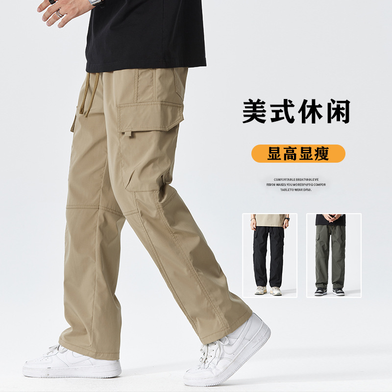 2025 夏の新作ワークパンツメンズ隠しグリッドフロアレングスカジュアルパンツゆったりと快適なアメカジトレンディなブランド