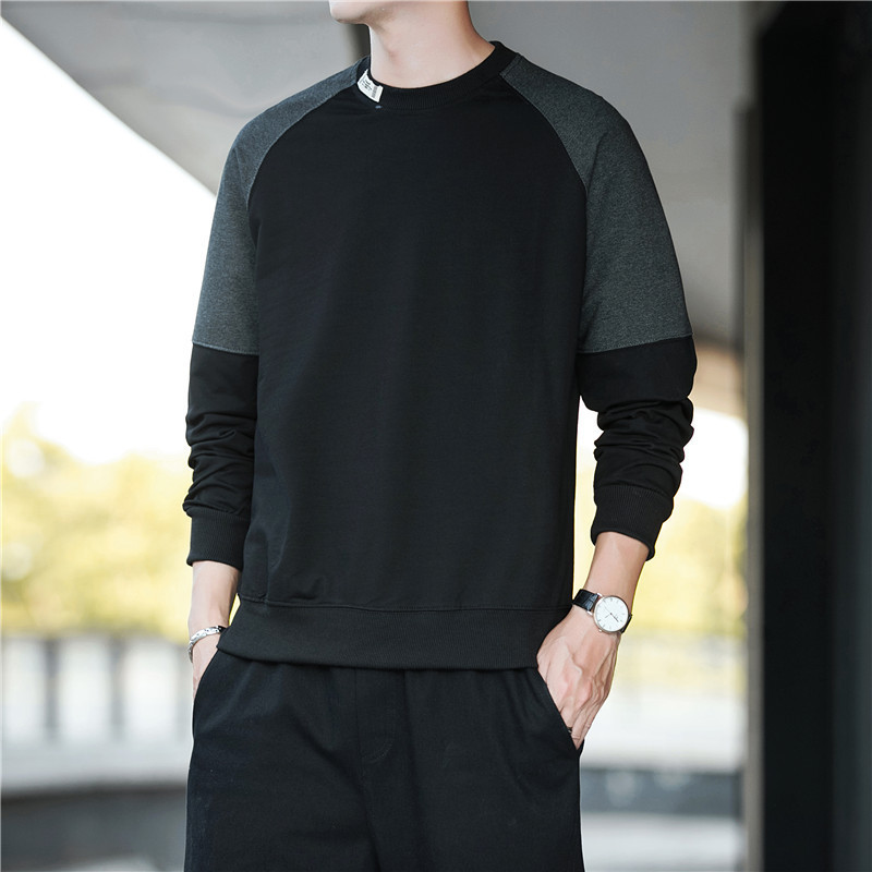 2024新型男性スウェット春のゆるい服の流行にベルベット秋の服秋の上着長袖tシャツがついている