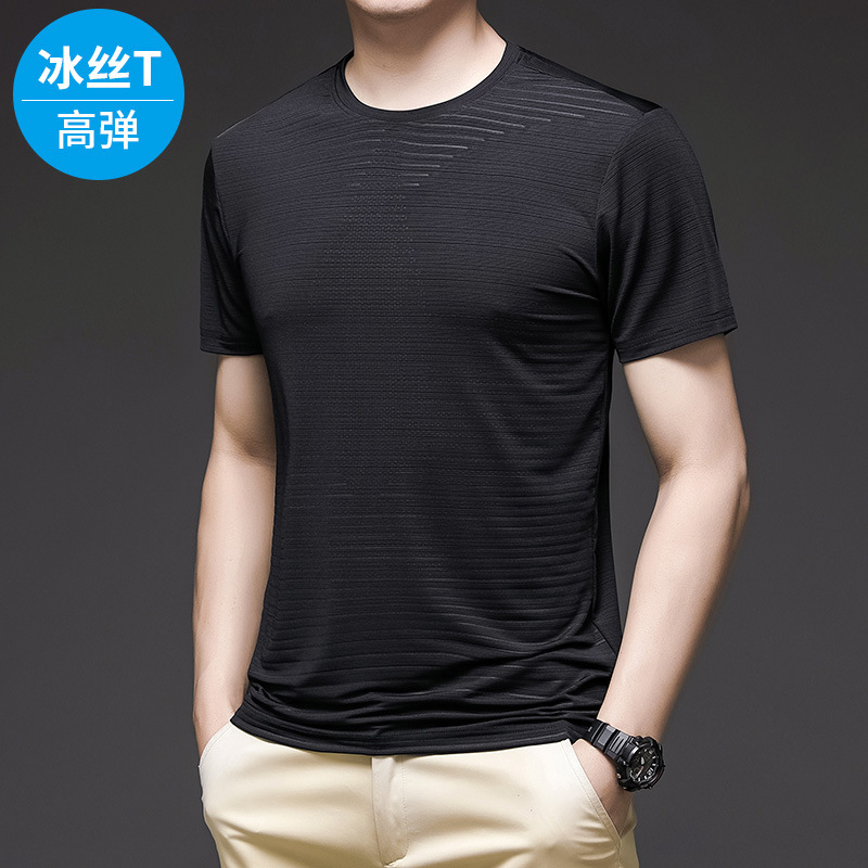 2023新型夏氷糸半袖tシャツ男性潮牌潮流夏服運動フィットネス棒プリント半袖