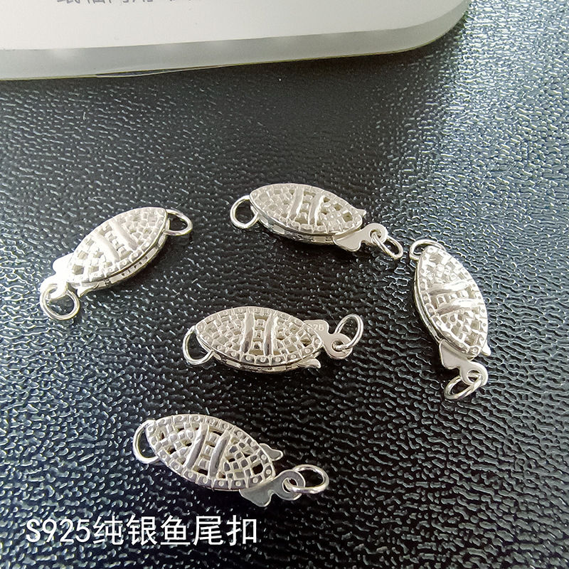 S 925純銀の透かし彫りの魚の尾は真珠のネックレスのブレスレットのDIYの部品を掛けて修理します。